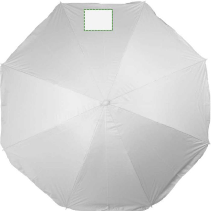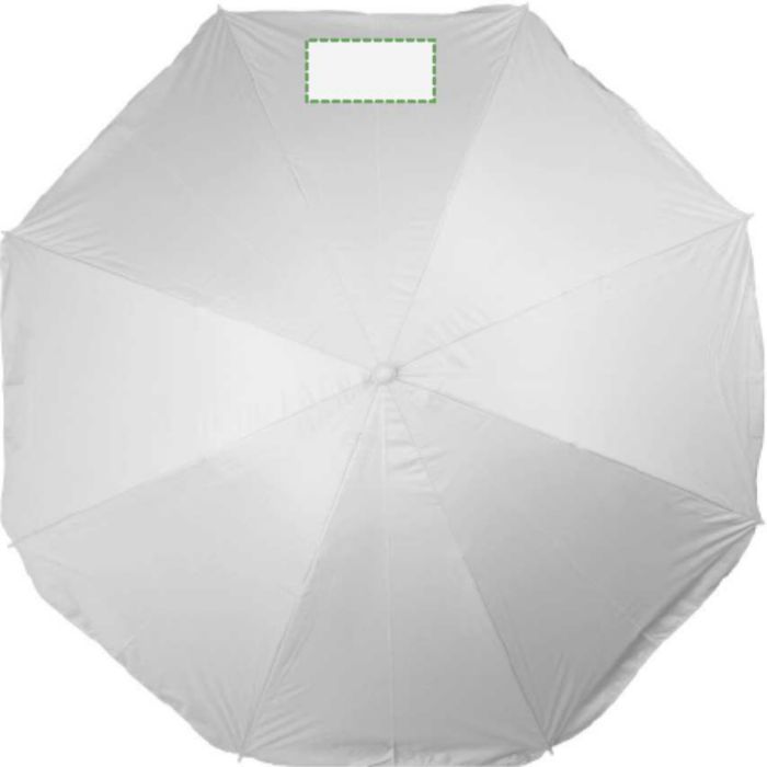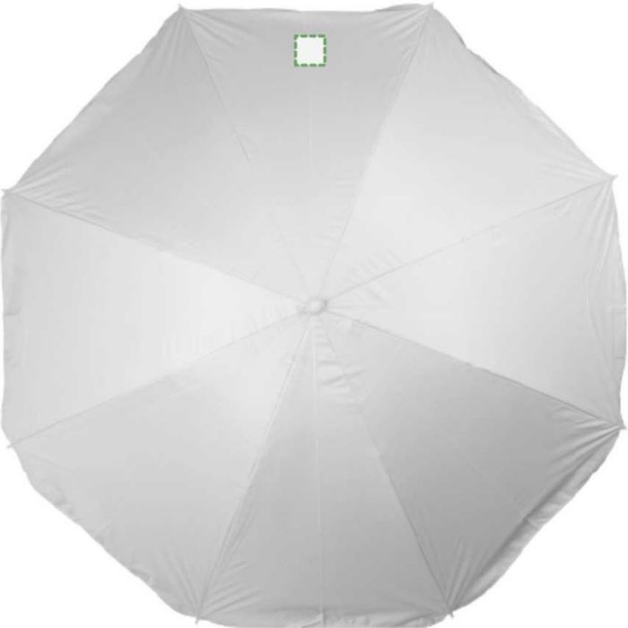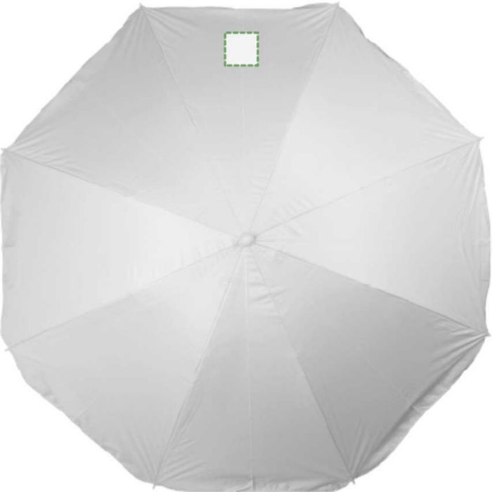 190T polyester parasol with UV coating and eight panels. 150 cm diameter. Packed in a pouch with a carrying strap.