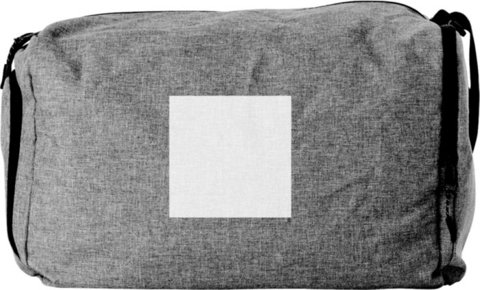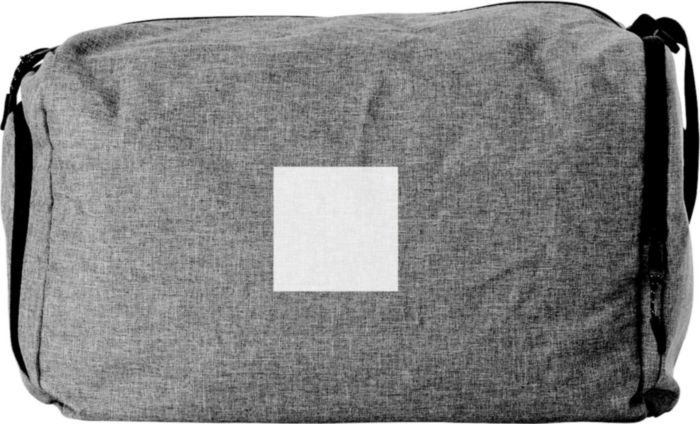 300D Two Tone duffle bag. One side pocket to fold the back and a side pocket designated for shoes. Is delivered folded.
