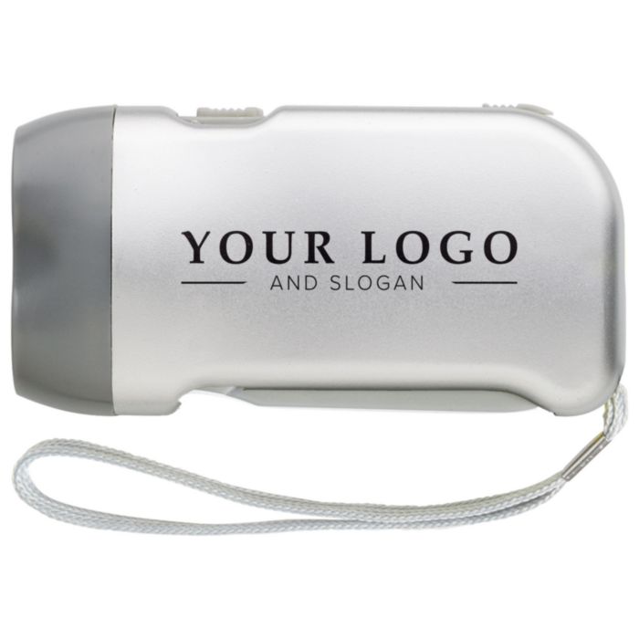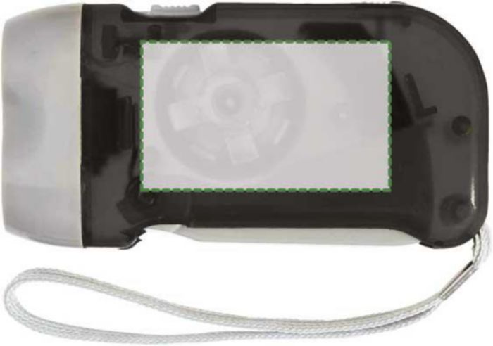 ABS dynamo self-charging torch with two LED light and wrist straps. Patent: EU Nr. 363627-0002