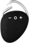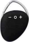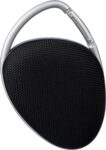 ABS outdoor speaker with carrying cord. 5W output, DC 5V input, 800mAh built-in rechargeable battery, and 3.5 hours of playing time. Working distance of 15-20 meters, signal-to-noise ratio of 75 dB. Frequency range: 100 Hz to 20 kHz. Includes 30 cm Type-C charging cable. Wireless connection technology: 4.2. Individually packaged in a brown cardboard box.