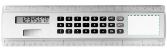 ABS ruler (20 cm) with a solar powered eight-digit calculator.