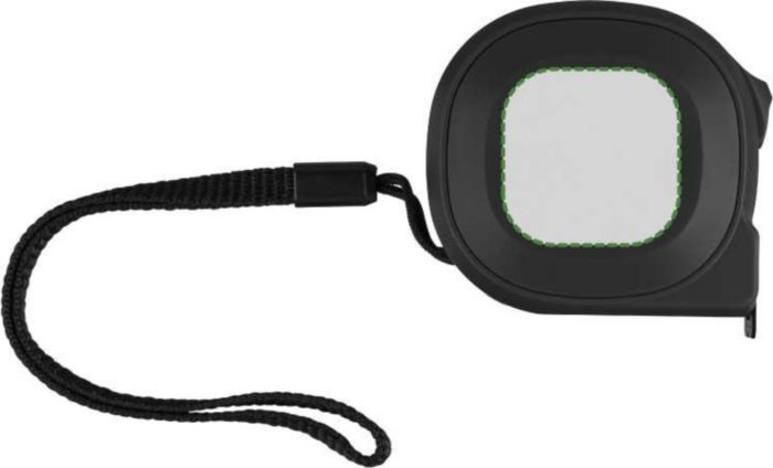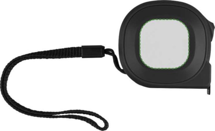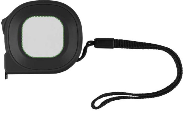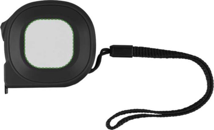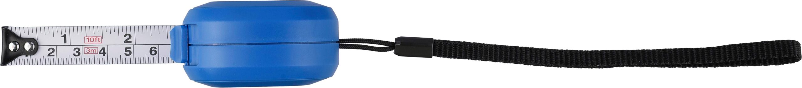 ABS tape measure with a polyester wristband. 3 meters in length. Tape made from metal (16 mm), printed with both centimeters and inches. Includes a push button with a lock. Individually packaged in a brown cardboard box.