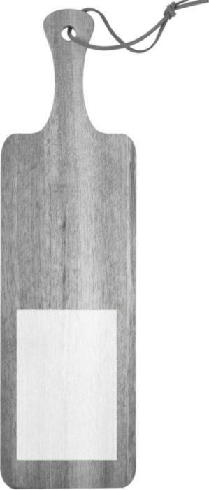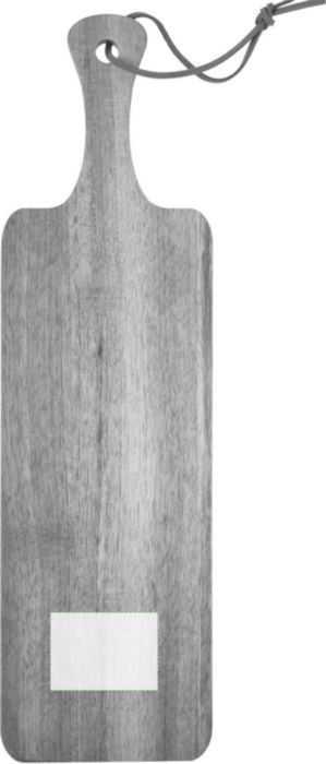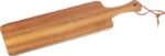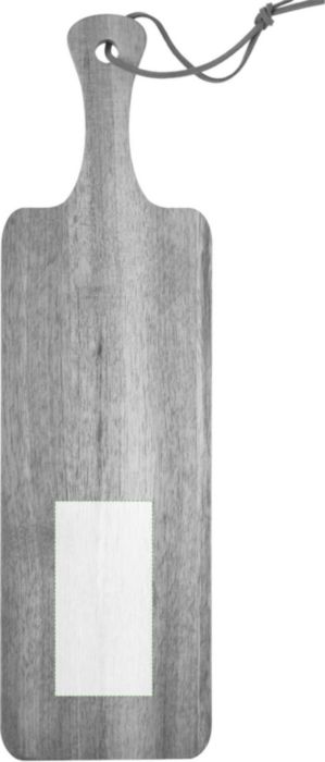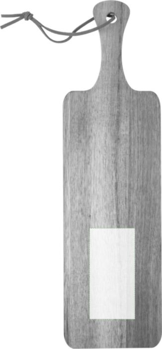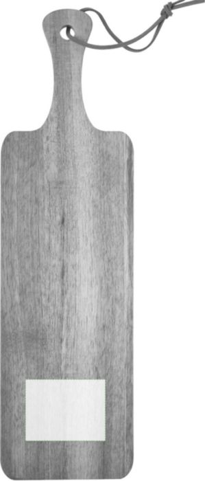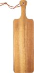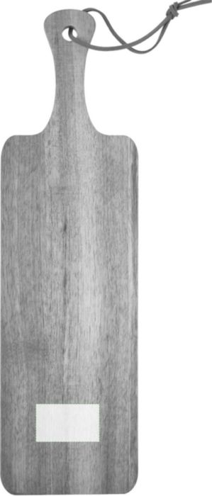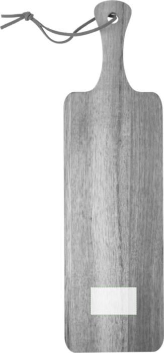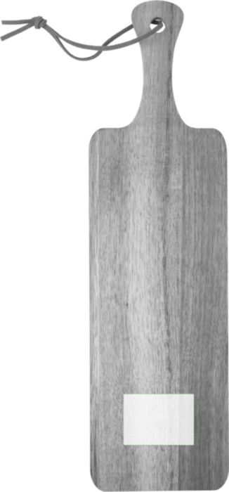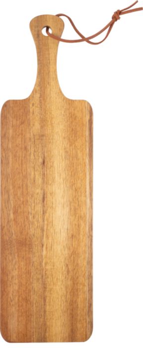 Acacia wooden cutting board with handle and PU cord. Individually packaged in a brown carton box.