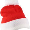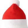 Knitted Christmas-style beanie made of 100% acrylic, featuring a festive design and a pom pom made of PET polyester.
