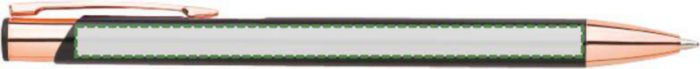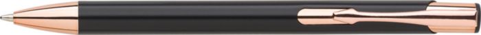 Aluminium ballpen with matte finish and rose gold details. Blue ink. When engraved the design will be silver colored.