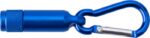 Aluminium mini torch with one LED light and carabiner to function as keychain.