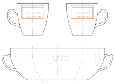 | Decorations | Tryck på handtaget; Tryck på insidan; Tryck på botten, insida; Tryck på bottens utsida; Kantband; Namntryck; Guldtryck; Matt Guldtryck; Silvertryck; Matt Silvertryck; Dekoration runt äggformad yta; Termotryck |