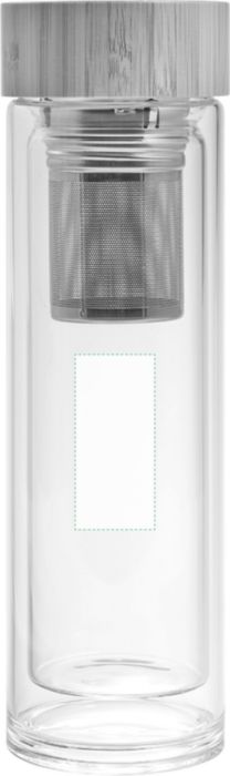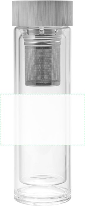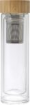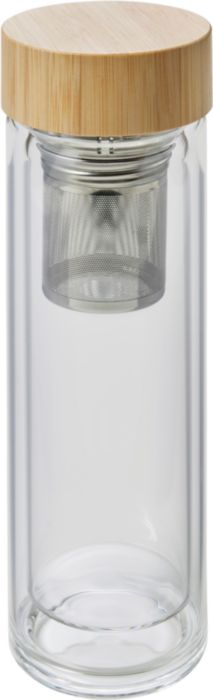 Bamboo and glass thermos bottle (420 ml), double walled. Including stainless steel tea infuser.