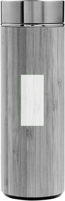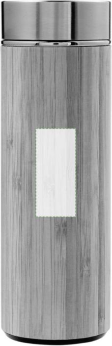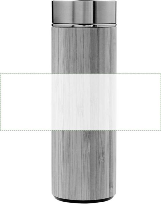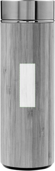 Bamboo and stainless steel thermos bottle (420 ml), double walled. Including stainless steel tea infuser.