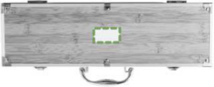Bamboo, three-piece barbecue set in bamboo with aluminium case, including: fork, spatula, and tongs.