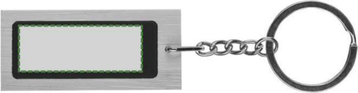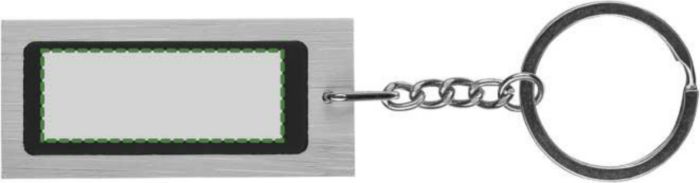 Bamboo keychain with a black rubber-coated stainless steel engraving plate inside, in a rectangular shape. The color after engraving is shiny chrome. Individually packaged in a brown carton envelope.
