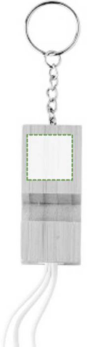 Bamboo keychain phone holder with charging cables. Type-C, lightning and USB-A/C. Individually packaged in a brown cardboard pouch.