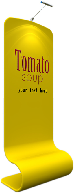 Curved banner stand. Size 91×228 cm. Fabric is pulled over the aluiminun tube frame and closed with a zipper. Weight only 4,1 kg. Packed in an oxford bag.