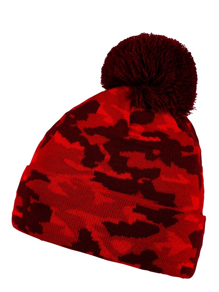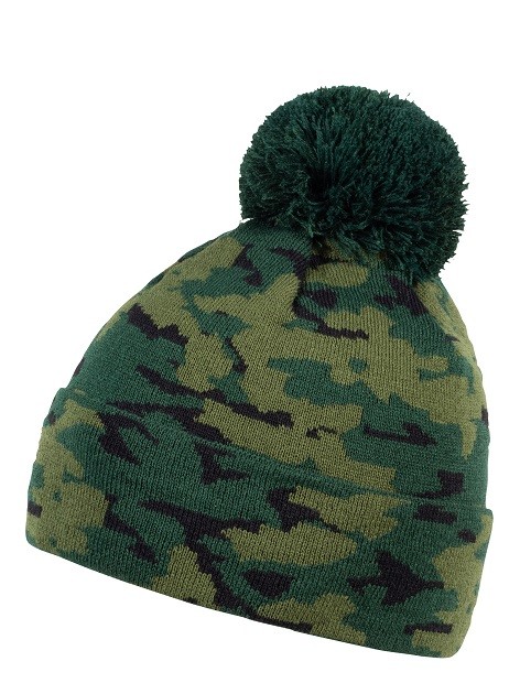 Cool adult camo beanie with pompom. Available in different color variations.