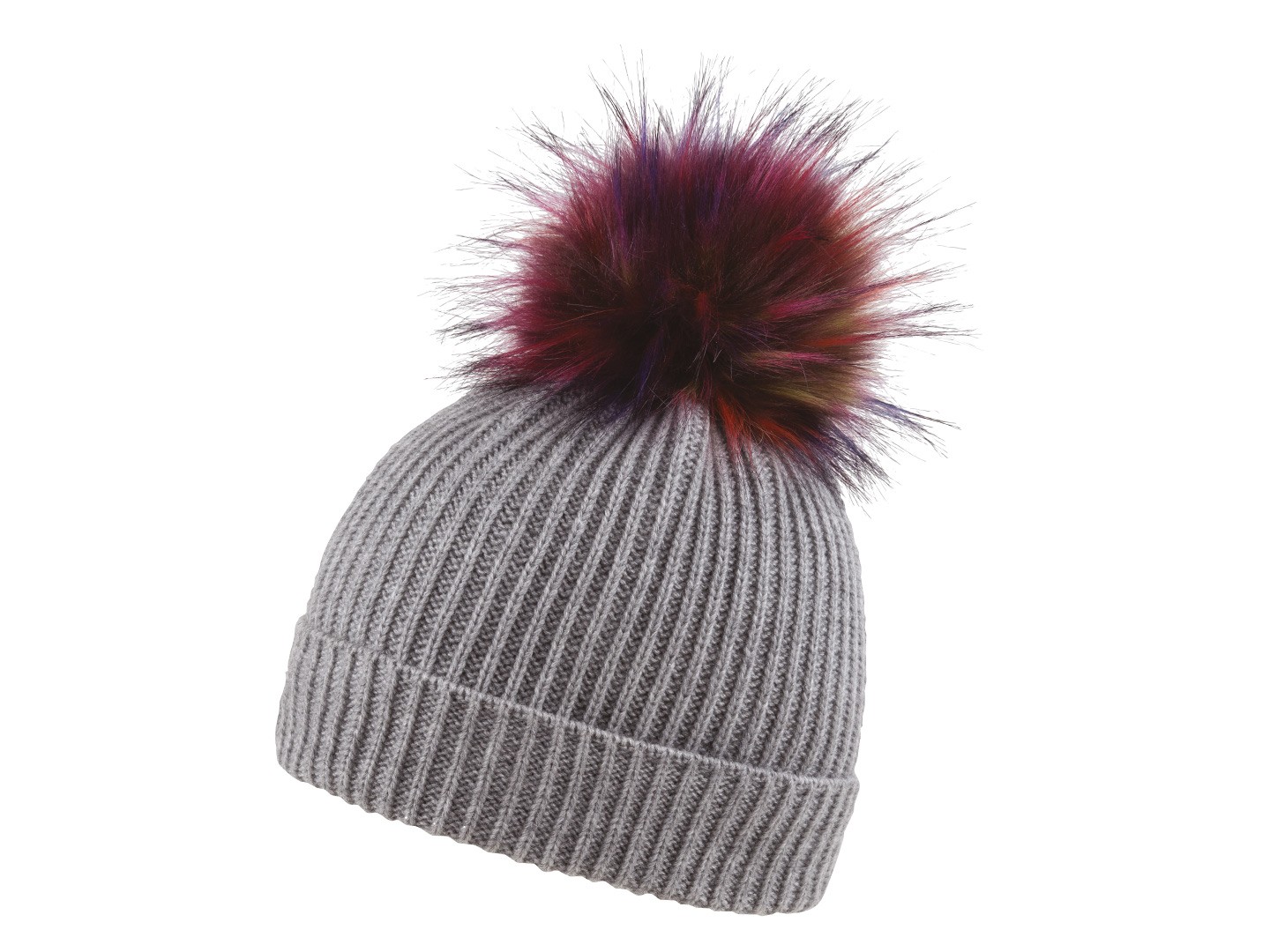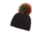 Cool beanie with fake fur contrasting pompon with rainbow effect