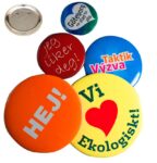 Campaign button, perfect for store advertisment, campaigns, etc. Plastic bottom The price includes offset print
