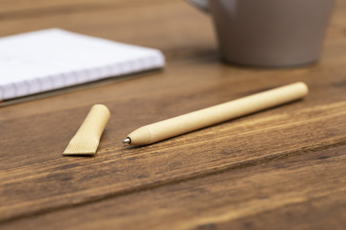 Recycled cardboard ballpen with cap. Blue ink.