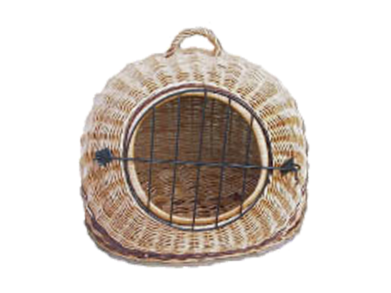 Transportation basket in willow with a metal door. Handmade in Europe.