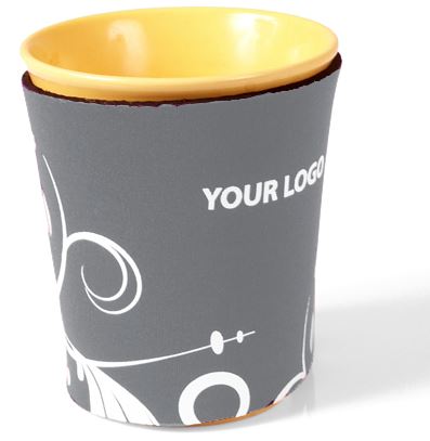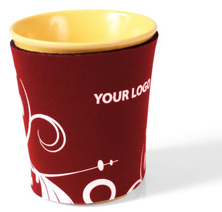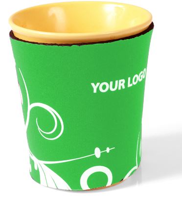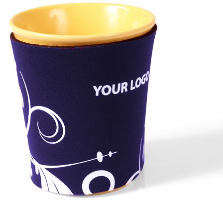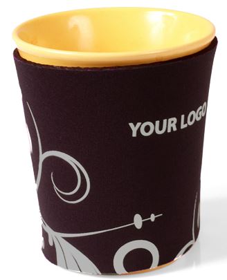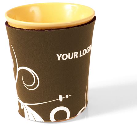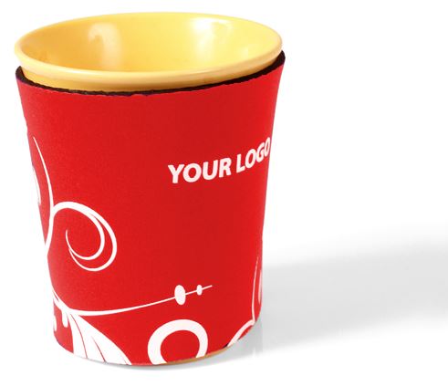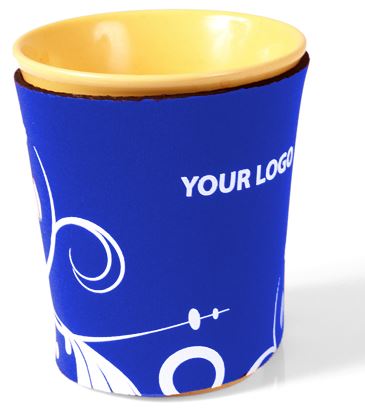 Coffee holder in neoprene. Perfect product to use to protect your fingers from burning when holding a warm cup / mug. This combined with adding advertisment, bring you a really nice product. Available in many colours.