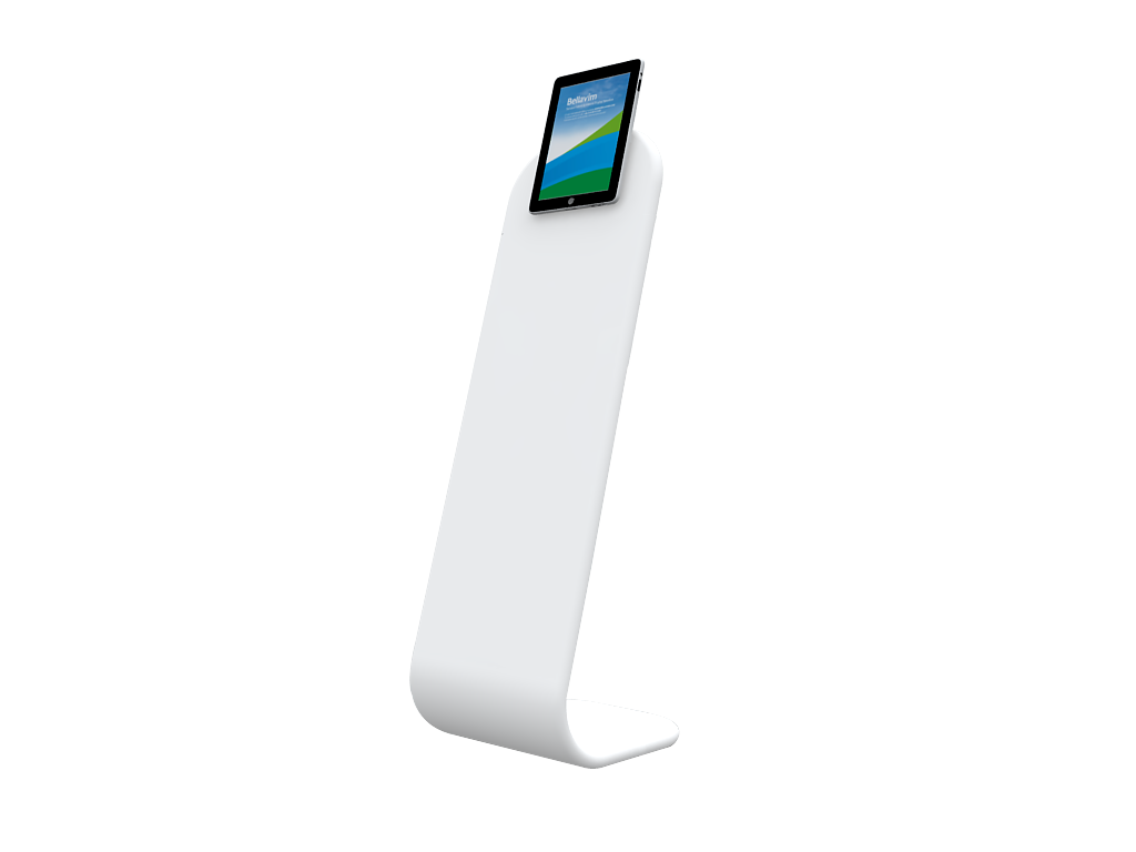 Fabric Ipad stand. Size 38×132. Fabric is pulled over the aluiminun tube frame and closed with a zipper, weight only 5,8 kg. Packed in an oxford bag. Delivered 1 set in black oxfordbag.