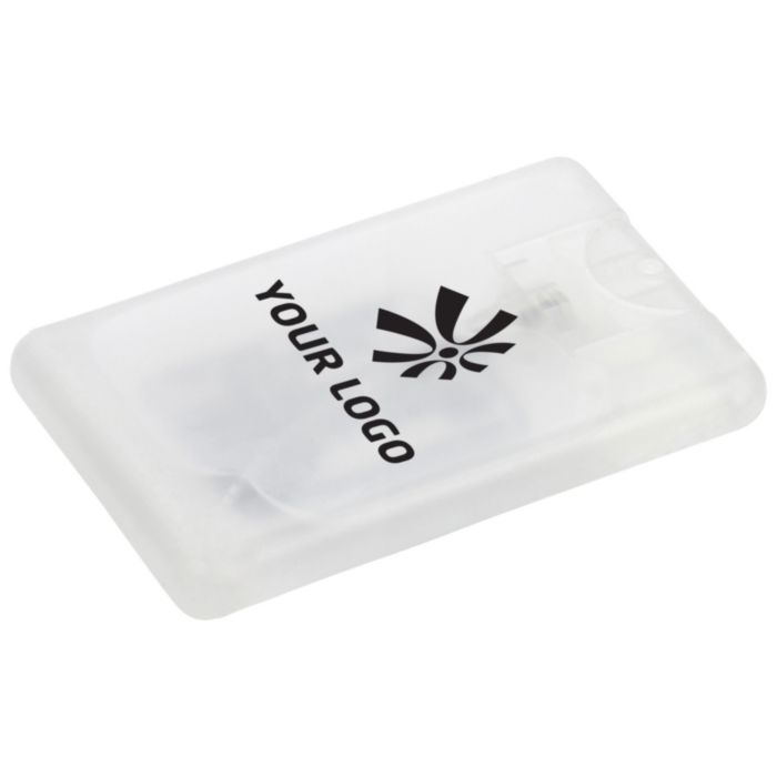 PET credit card shaped case with hand spray (20 ml).