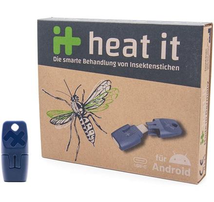 Heat It® Against Insect Bites Iphone (lighting) or Android (USB C) is a smart little technical device with short-term heat treatment against insect bites. Fast-acting treatment that helps alleviate the need to itch the skin with the help of concentrated heat. Can be used against mosquitoes, bees, wasps and brakes. The device is connected to a smartphone’s charging port and the heat can be adjusted depending on sensitivity. Easy to carry and can be attached to the keychain. Fits iPhone 6 and up.