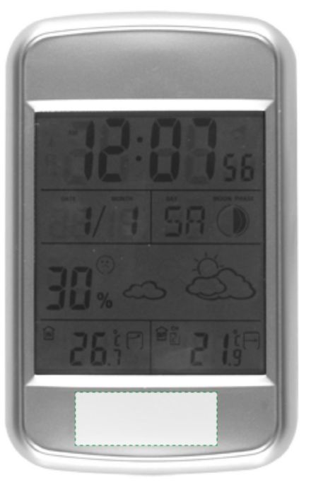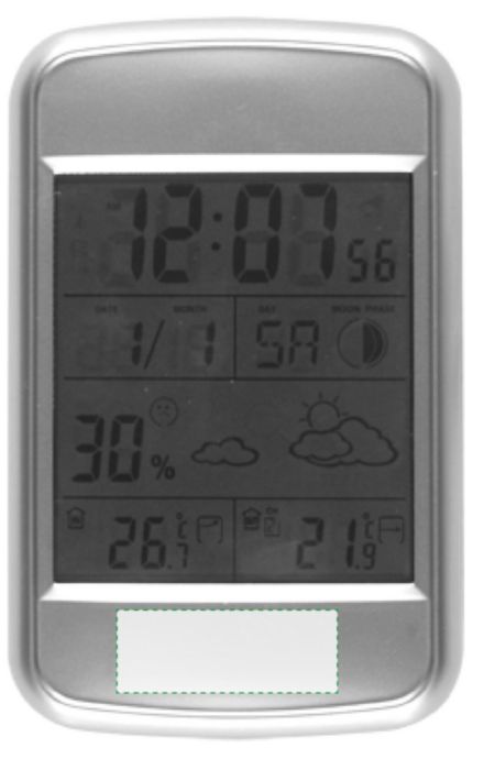 HIPS digital weather station with a sensor for using outside, clock, moon phase, and weather forecast. Batteries included.