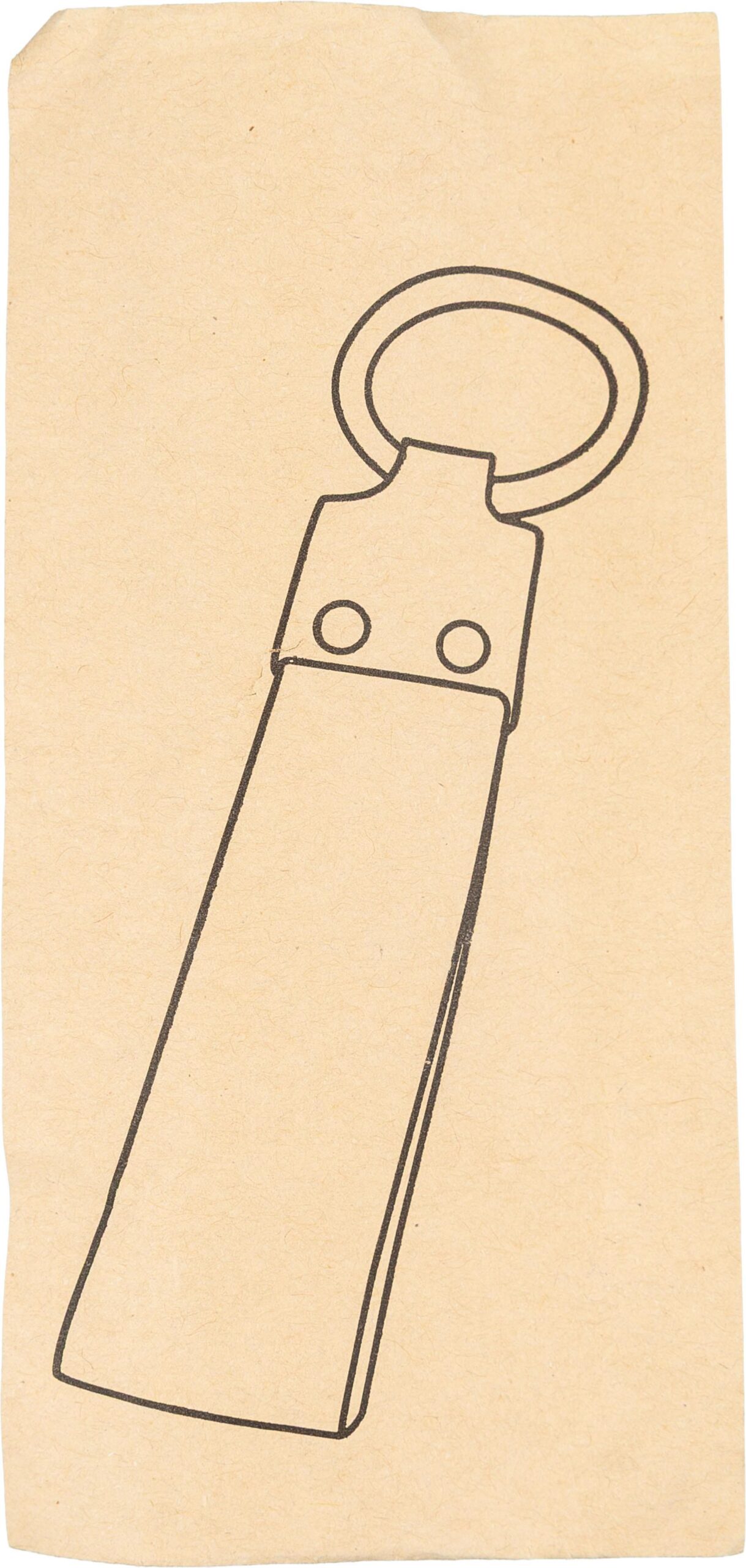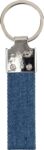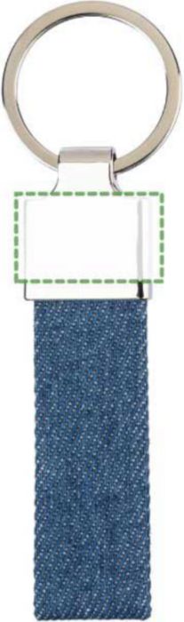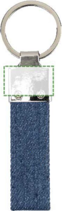 Denim and zinc alloy keychain with a sturdy metal ring. Combines durable materials for a stylish and functional accessory. Individually packaged in a kraft paper sleeve.