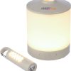 ABS multifunctional light with RGB camping functionality and a detachable flashlight featuring a carabiner hook and 4 light functions. Offers 8 colors, with white having 2 light modes. The other 7 colors can be set to a changing color mode by holding the button. The flashlight has an 800 mAh battery, and the camping light has a 2,400 mAh battery. Includes Type-C charging. Individually packaged in a cardboard box