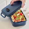 PP lunchbox with an 800 ml capacity. Features a silicone valve suitable for microwave use and a buckle closure. Packaged in bulk.