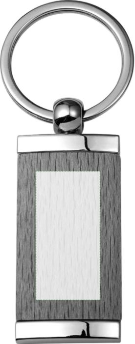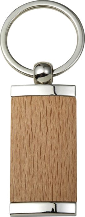Metal and wooden key holder with steel keyring. Individually packaged in polybag.