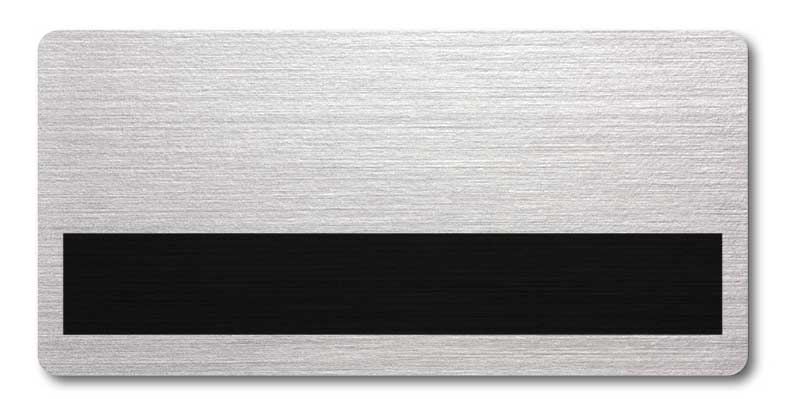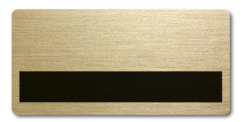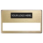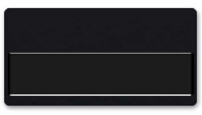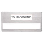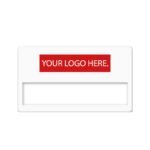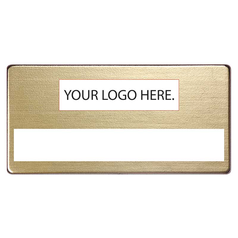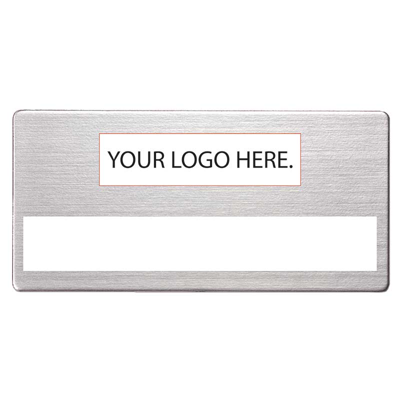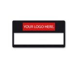 Write badge with a cut-out slot for dymo tape.