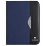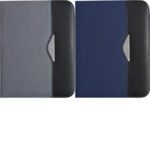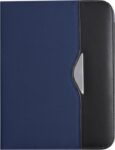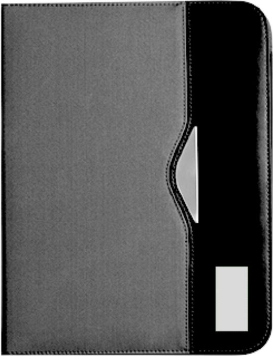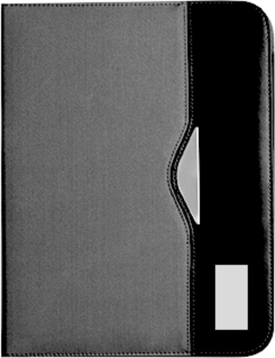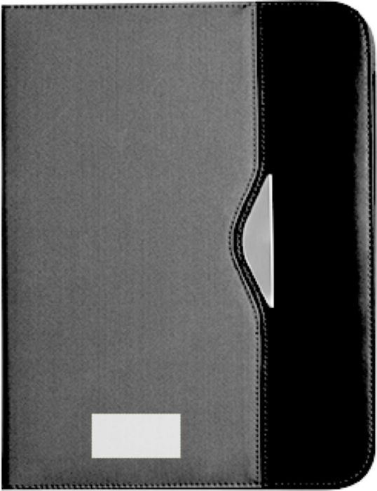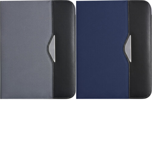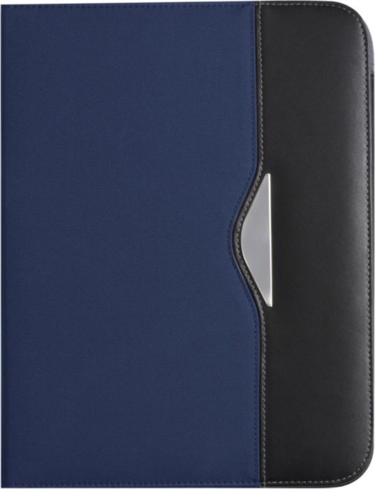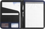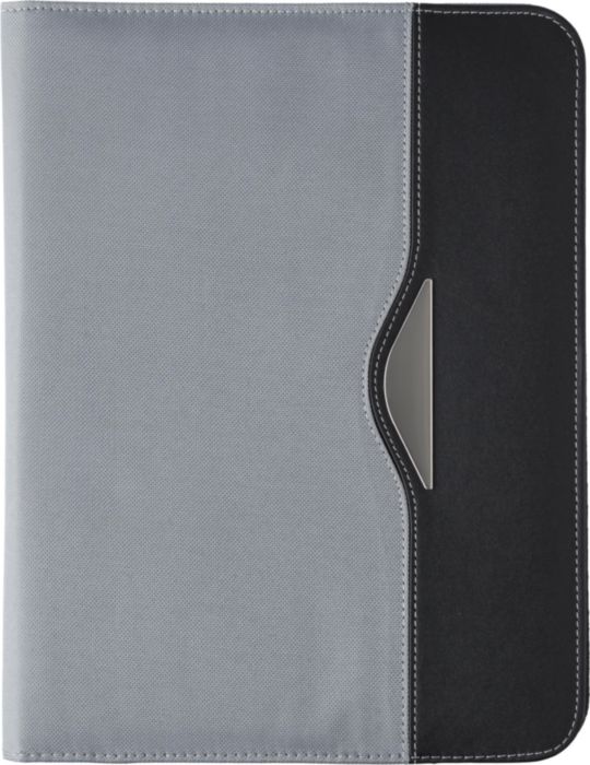 Nylon (600D) conference folder (approx. A4) with notepad with 30 lined sheets, two large internal pockets, two small business card pockets, and pen loop (pen not included).