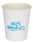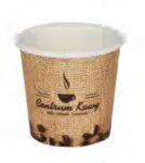 Very well looking glossy print, vivid colours, picture-like quality. The most popular cup used for advertising or marketing campaigns, sometimes also used for coffee to go. They might get stuck together due to their rigid walls. Customers appreciate its rigid walls and outstanding price-quality ratio.