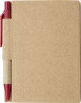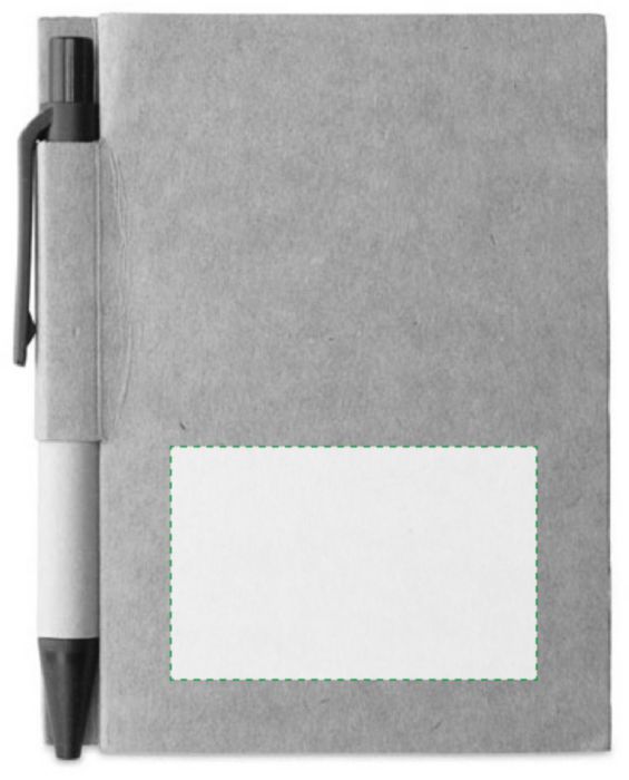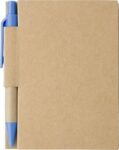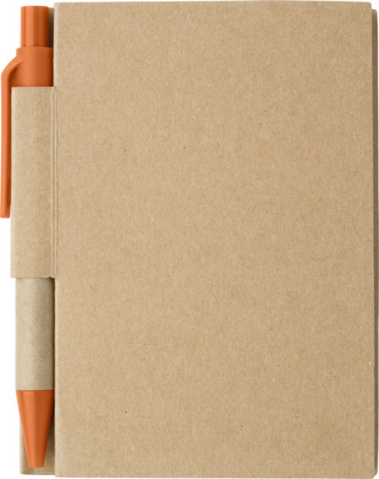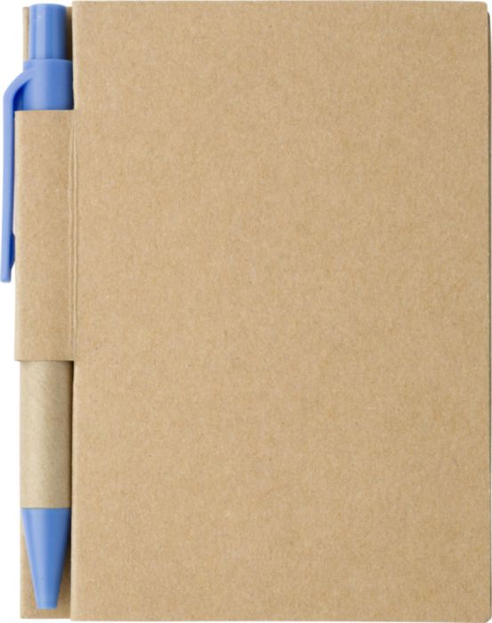 Cardboard notebook with 80 lined pages, pen loop and ballpen with black ink.