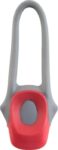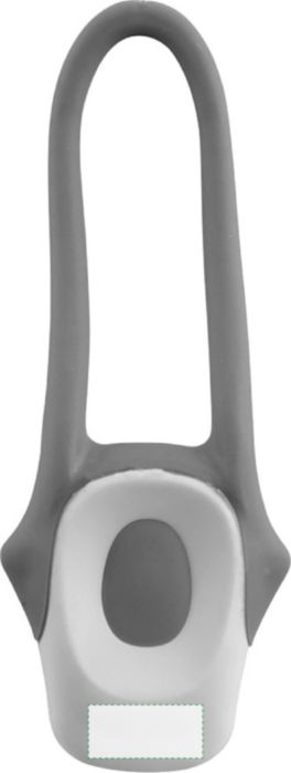 Plastic bicycle light with two LEDS and two blinking options. With silicone strap. Batteries included.