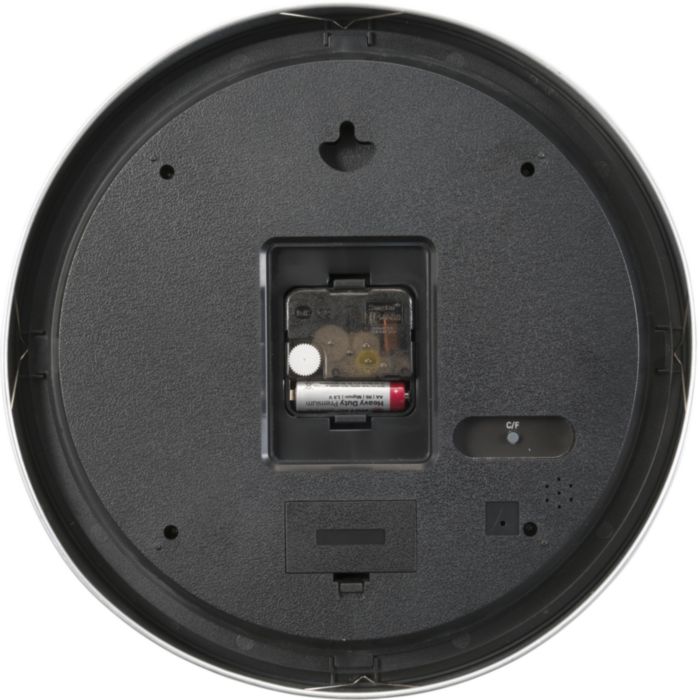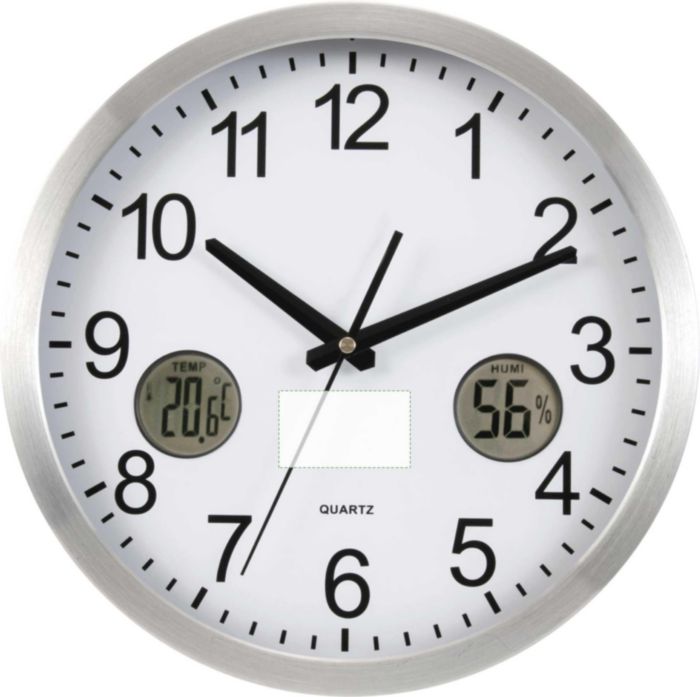Plastic wall clock with a smooth turning second hand, and two digital functions on the dial plate; an indoor thermometer, and a hygrometer. Batteries included. Sold per 10 pieces.