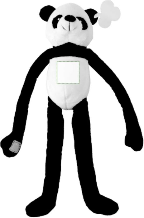Plush panda with long arms and Velcro closing. Embroidery eyes. Including ear tag for printing.