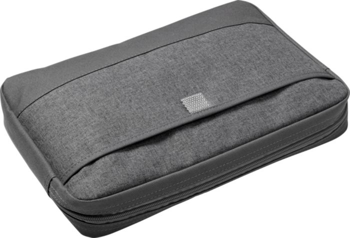 Poly canvas (600D) laptop bag (13,3′) suitable for a tablet or small laptop, with a pocket in the front with Velcro closing, and a large zippered compartment.