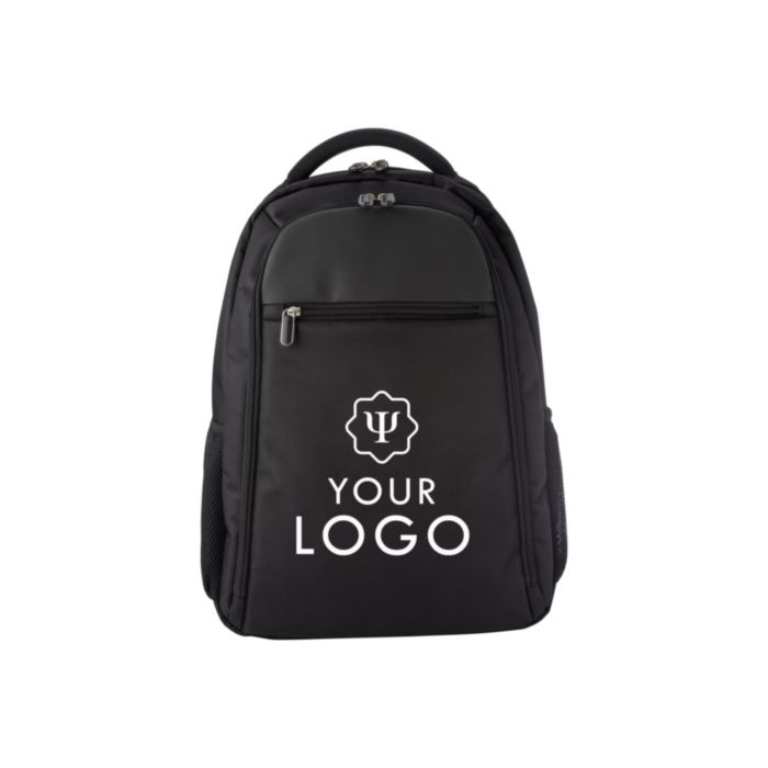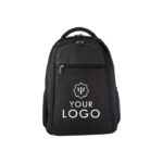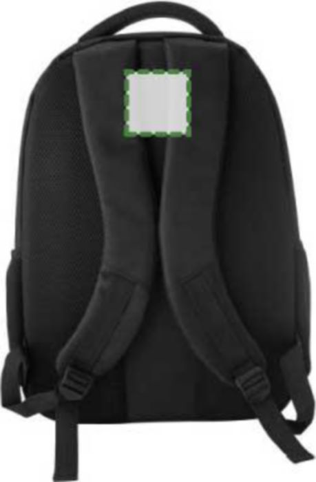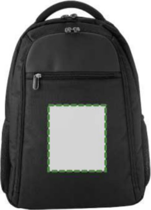 Polyester (1680D) laptop backpack with padded laptop compartment (15 inch) with padded and zippered front pocket.