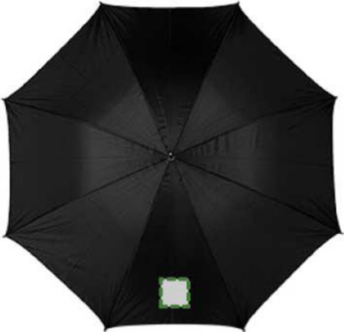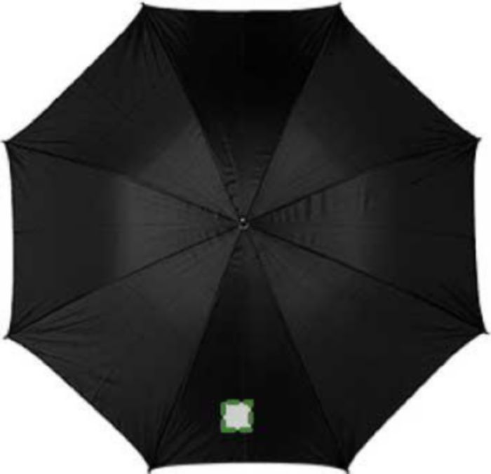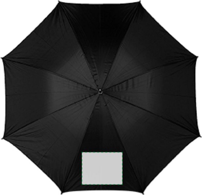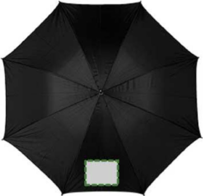 Polyester (190T) golf umbrella with eight panels. Metal frame and wooden handle.
