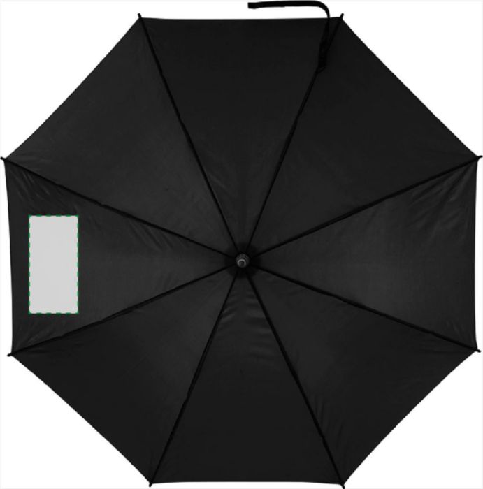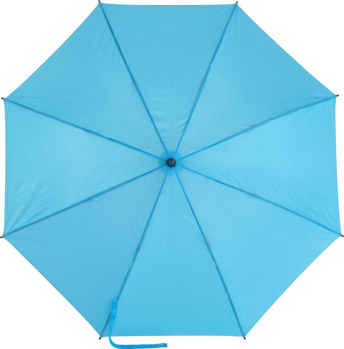Polyester (190T) automatic umbrella with eight panels. Fibreglass frame and EVA foam handle.