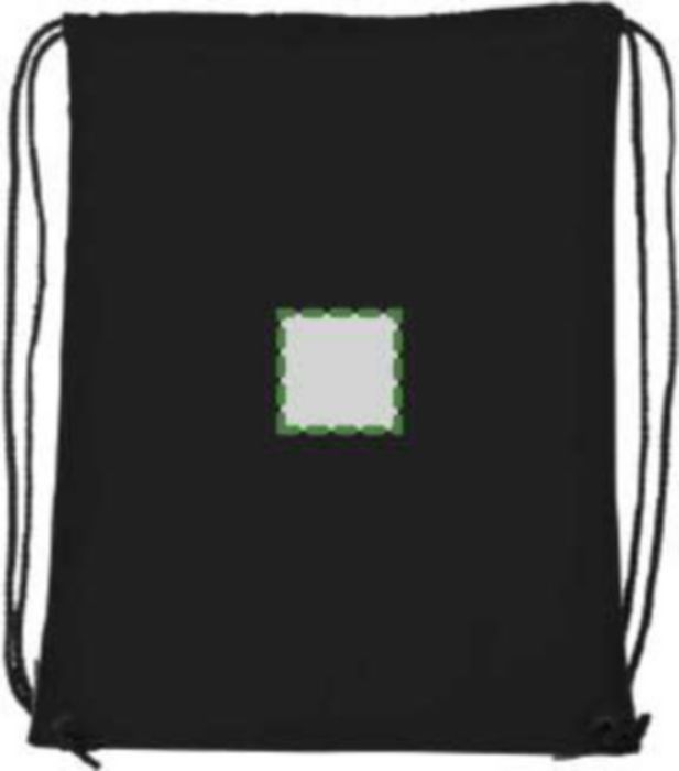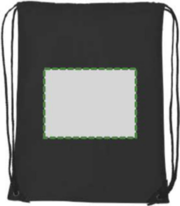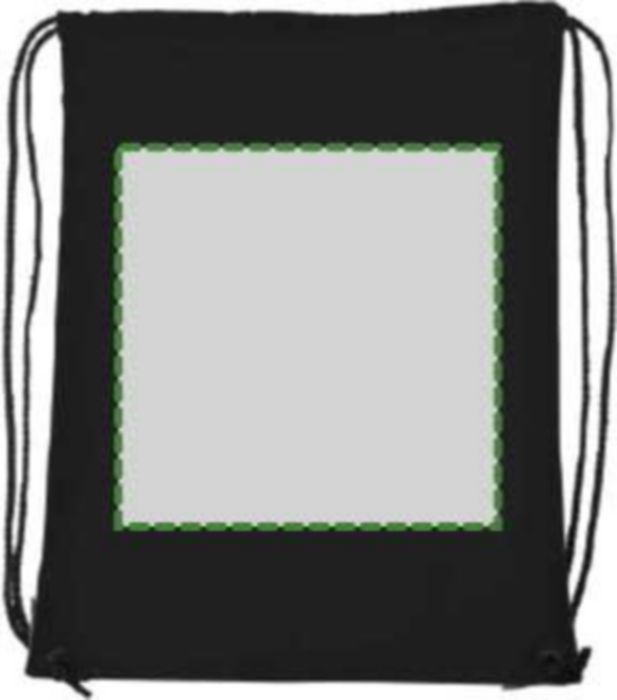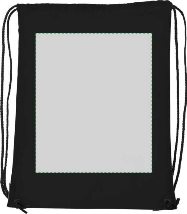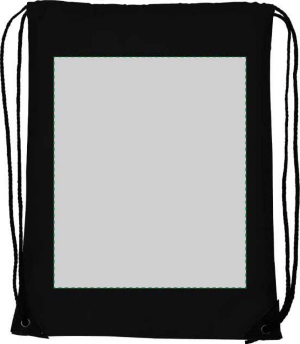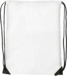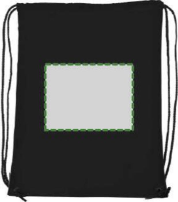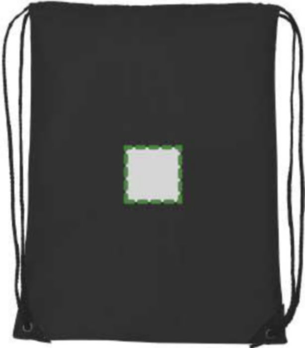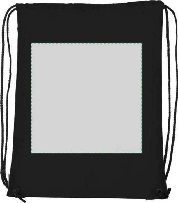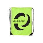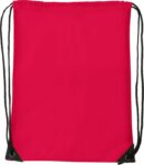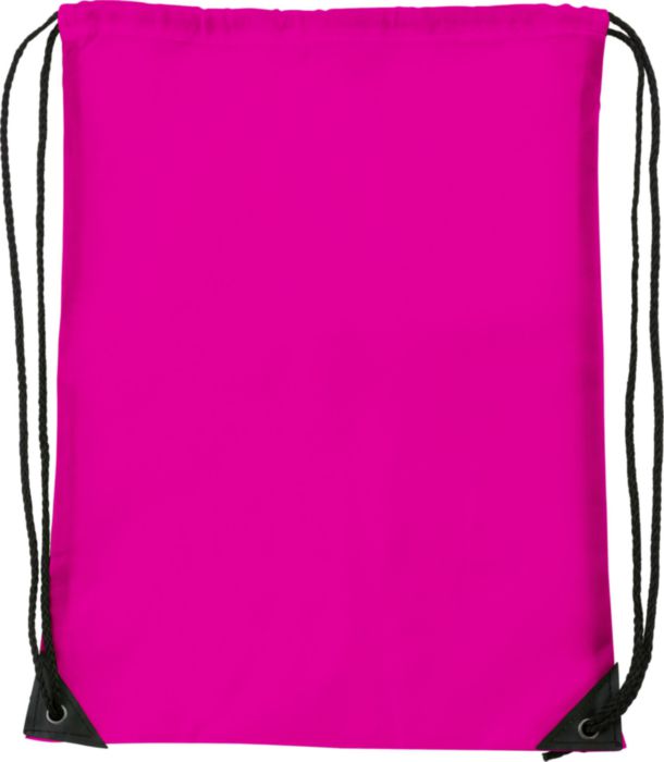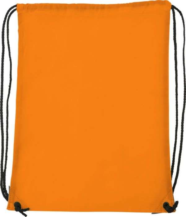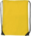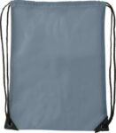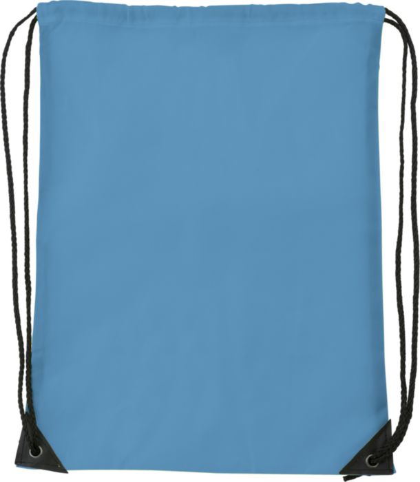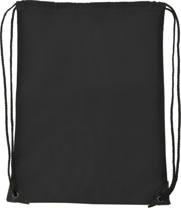 Polyester (210D) drawstring backpack with reinforced corners and nylon drawstrings.