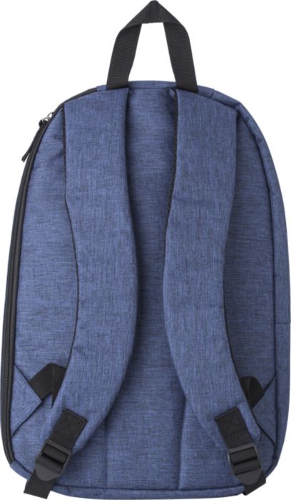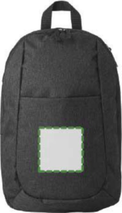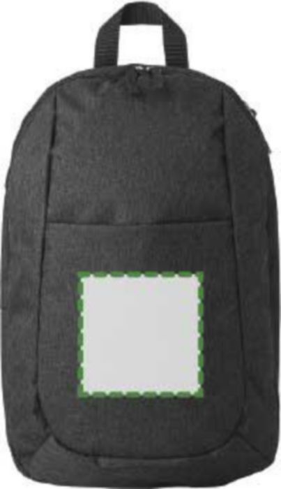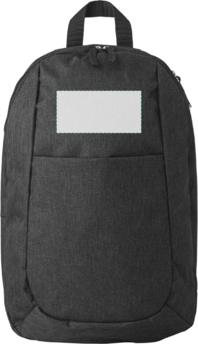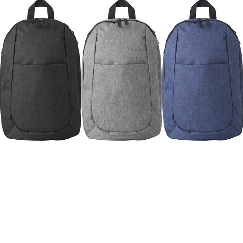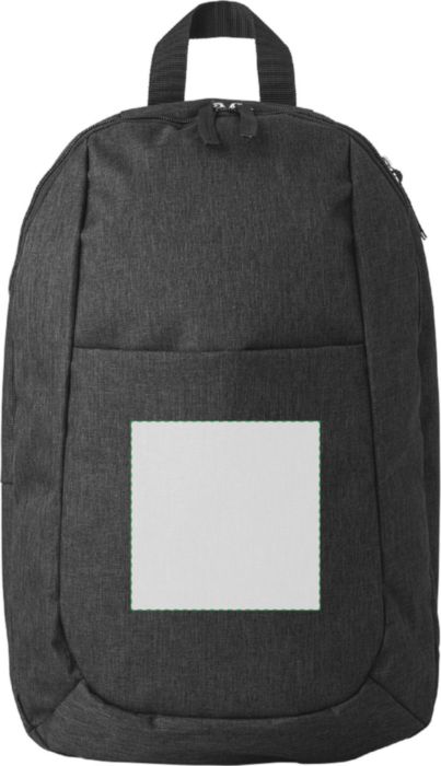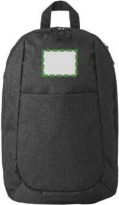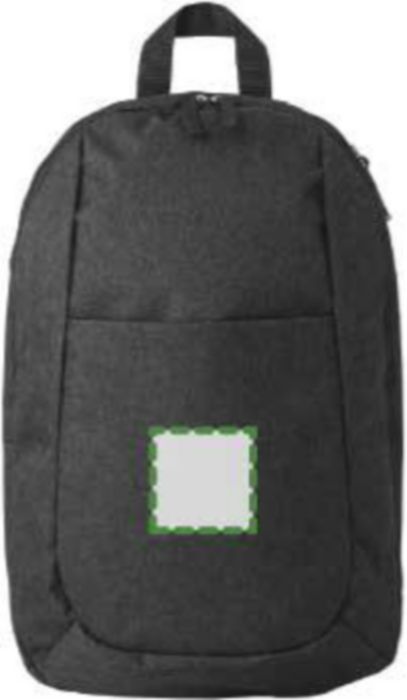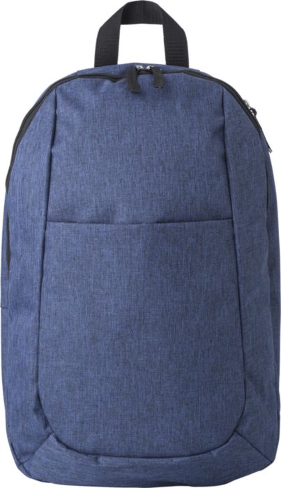 Polyester (300D) backpack, with main compartment, front pocket, and interior pocket. The shoulder straps are adjustable.