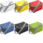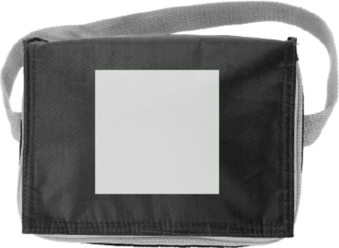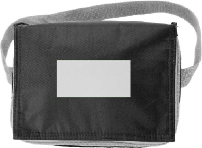 Polyester (420D) cooler bag with space for six cans and zipper.