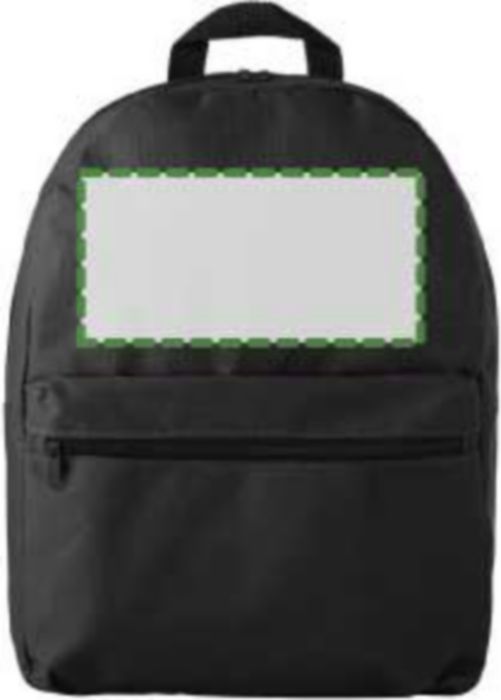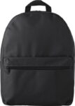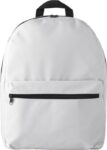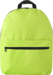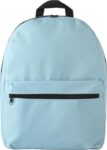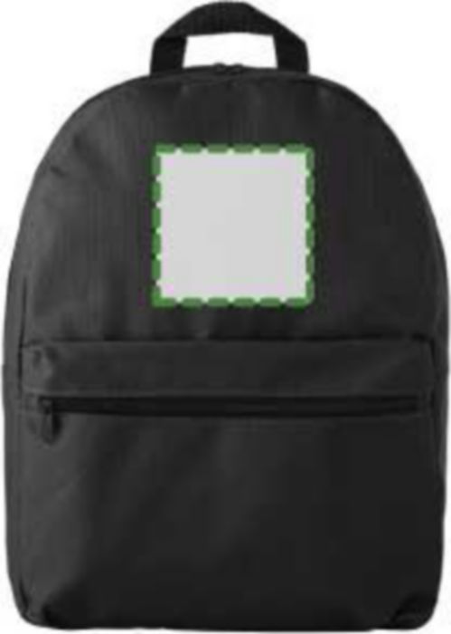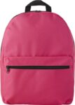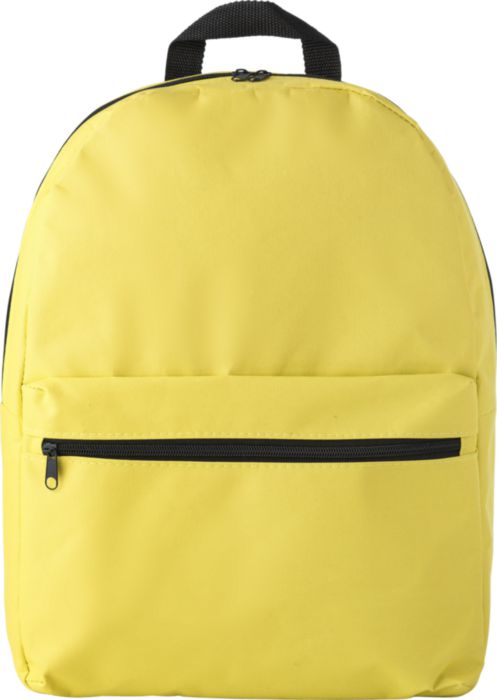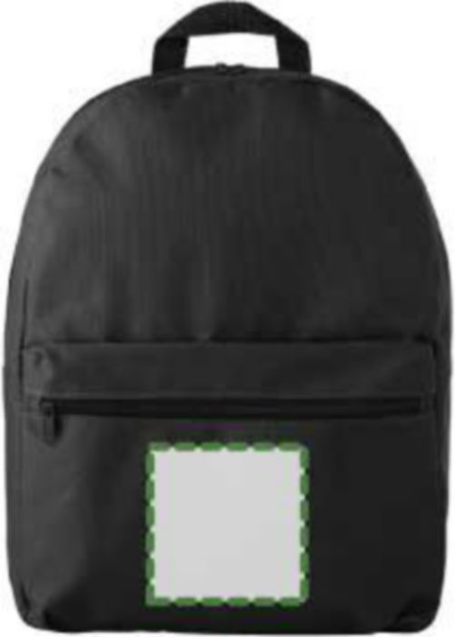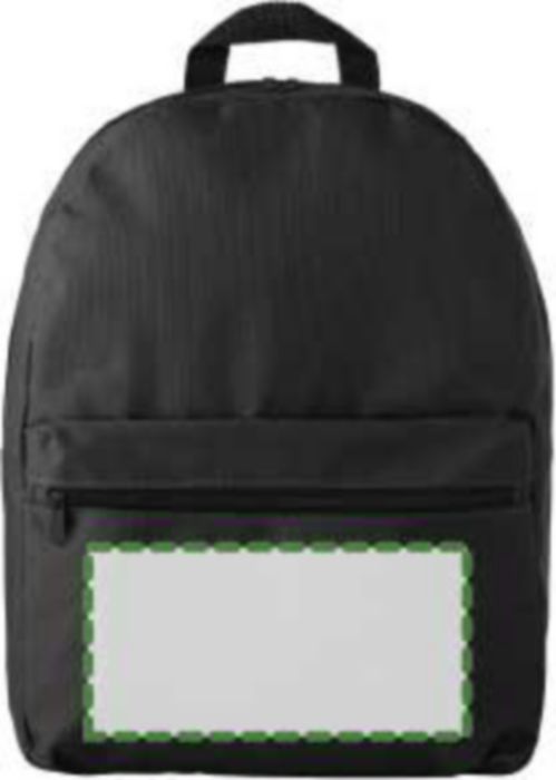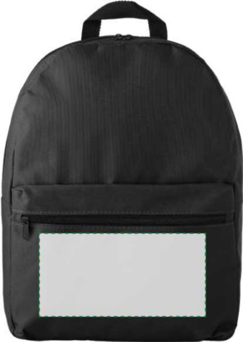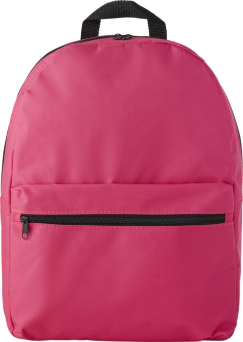 Polyester (600D) backpack with zipper on the main compartment and front pocket. The bag has adjustable, padded shoulder straps.