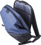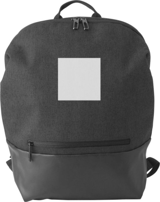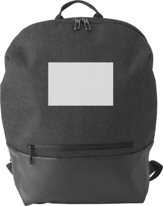 Polyester (600D + 300D) backpack with zippered front pocket and adjustable shoulder straps. Including USB port at the side.