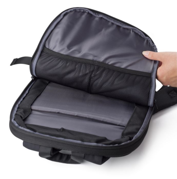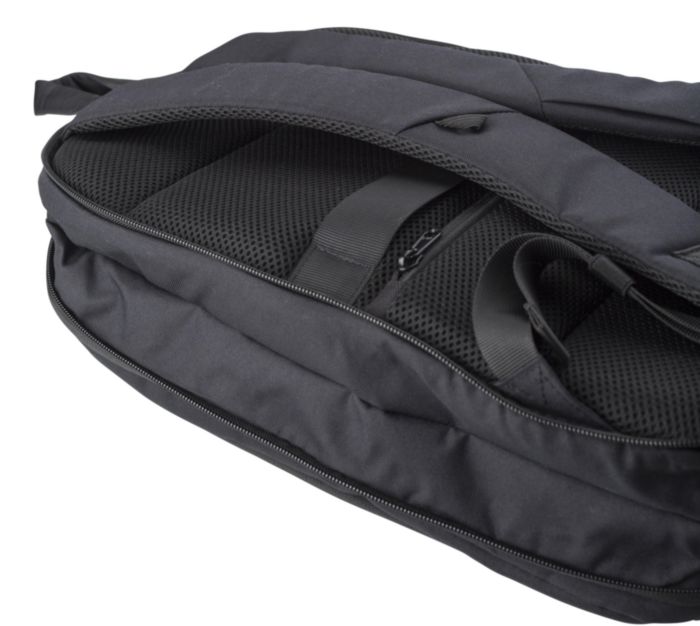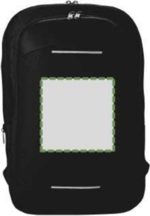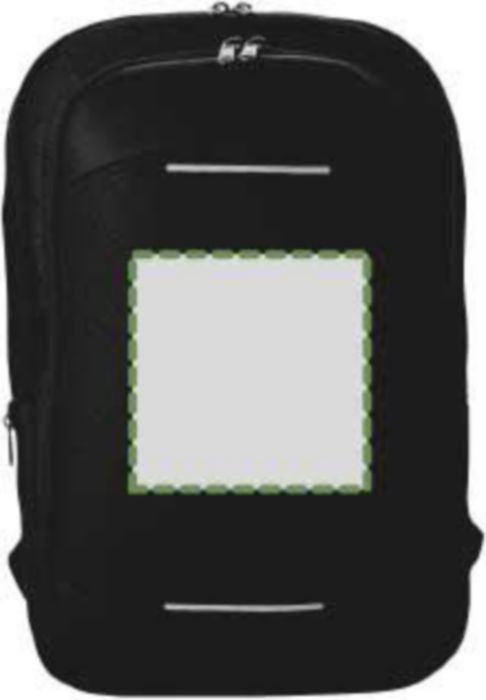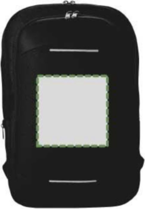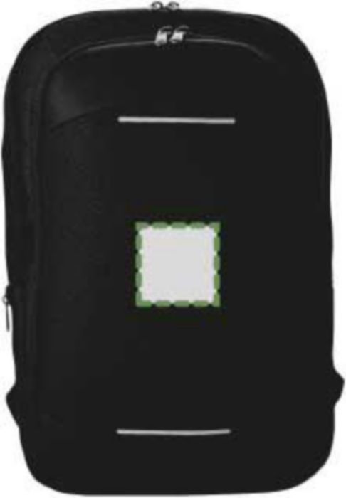 Polyester (600D) backpack with zipper front pocket, and adjustable padded shoulder straps. With a secret pocket on the backside and reflective stripes on the front.
