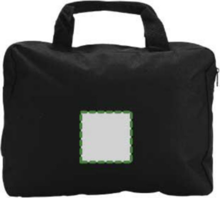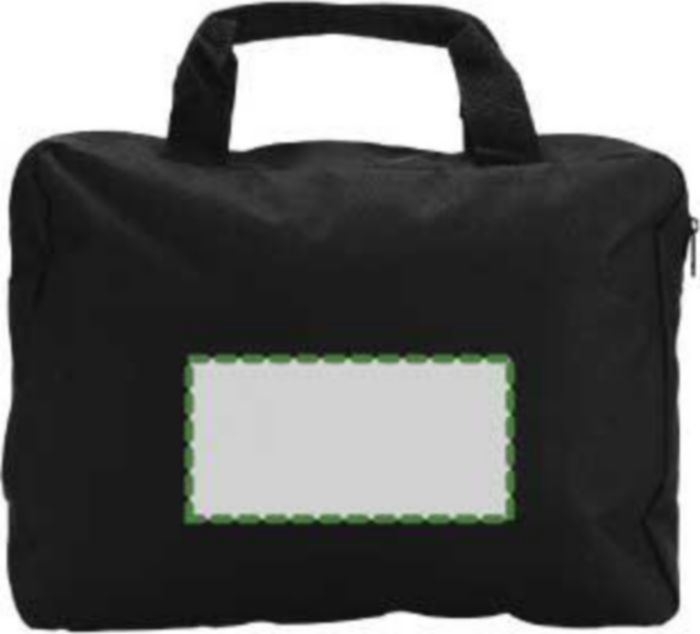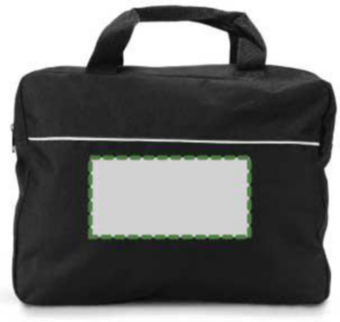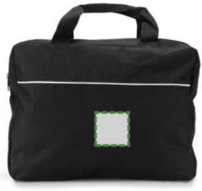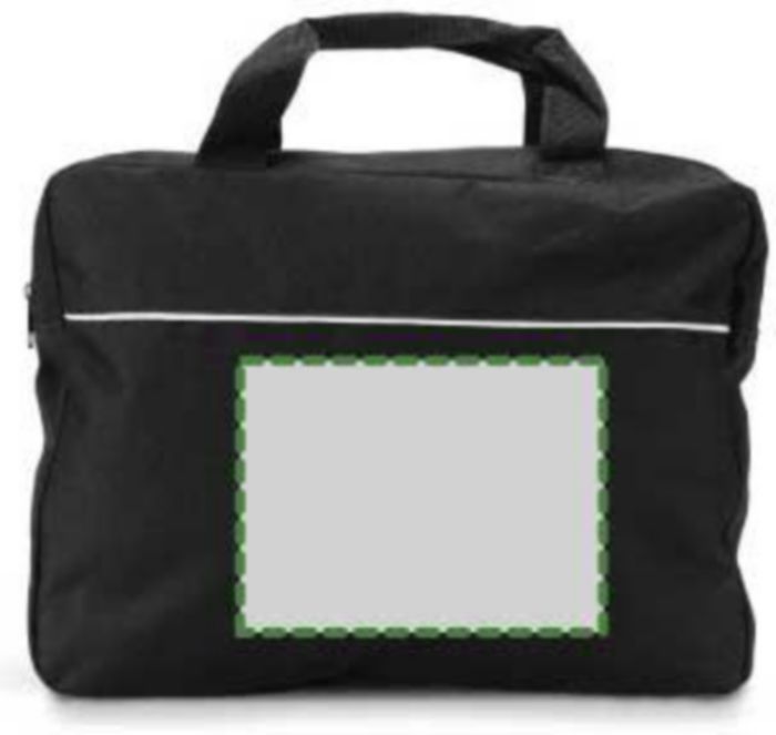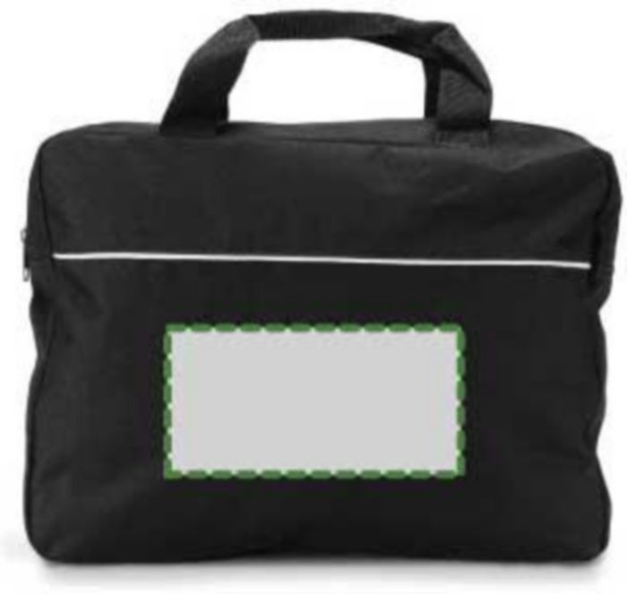 Polyester (600D) document bag with a zippered compartment and two short handles.