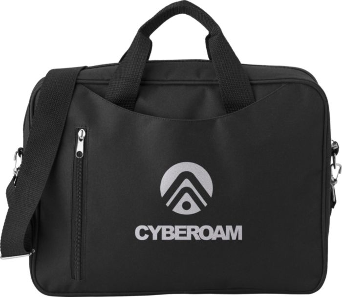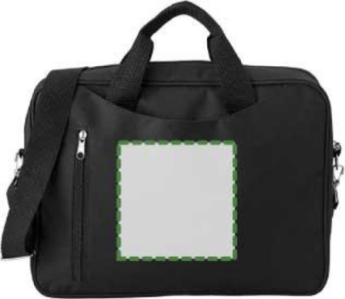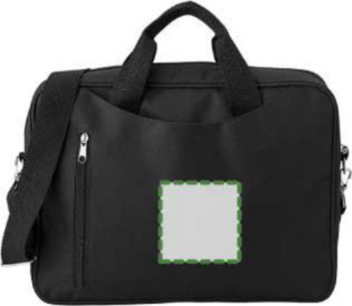 Polyester (600D) laptop bag, with a front zippered pocket, large zippered and padded compartment (14 inch), including a pocket with Velcro closing, two small carry handles and an adjustable shoulder strap.
